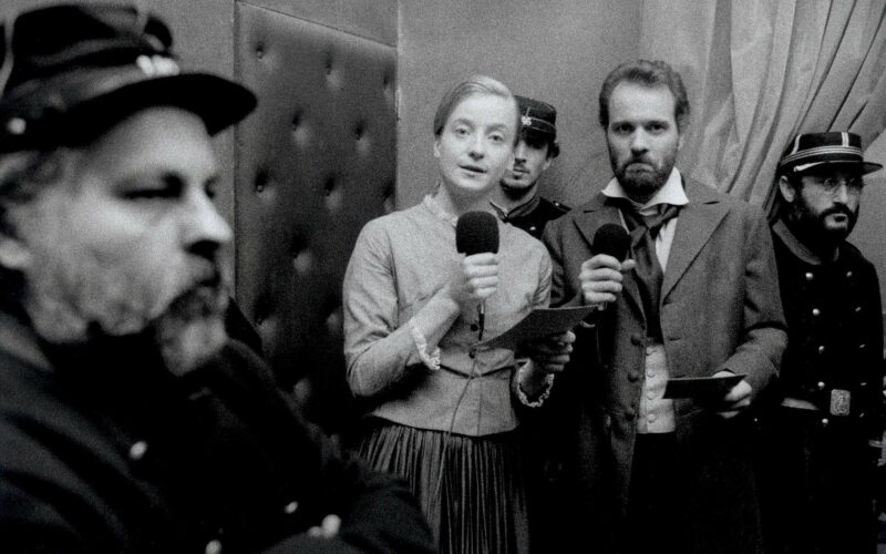 Nous sommes en mars 1871, tandis qu’un journaliste de la Télévision Versaillaise diffuse une information lénifiante, tronquée, se crée une Télévision Communale, émanation du peuple de Paris insurgé… Dans un espace théâtralisé, plus de 200 participants (intermittents du spectacle, chômeurs, sans-papiers, provinciaux, montreuillois, simples citoyens, …) interprètent, devant une caméra fluide travaillant en plans séquences, les personnages de La Commune pour nous raconter leurs propres interrogations sur les réformes sociales et politiques.